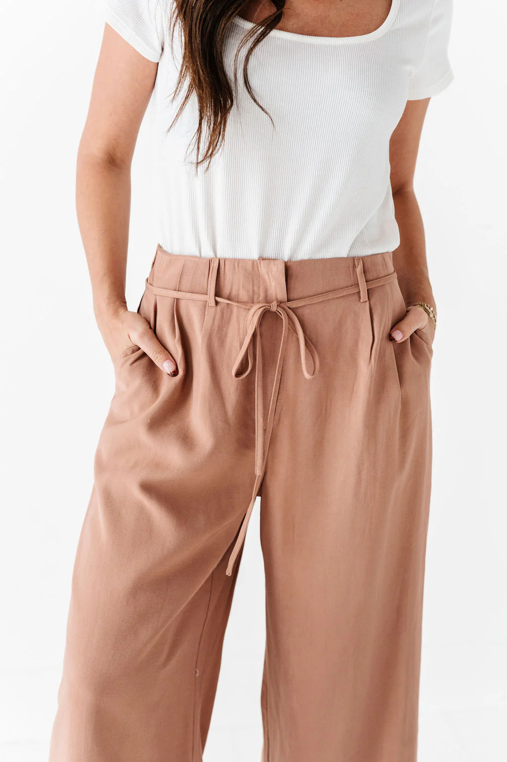 Anniston Wide Leg Pants in Camel - Size Medium Left