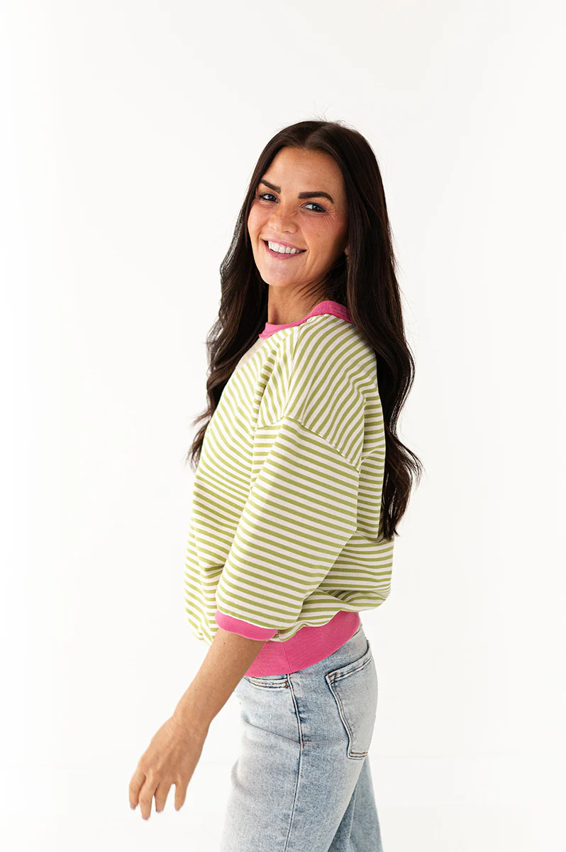 Avery Striped Tee in Green—
