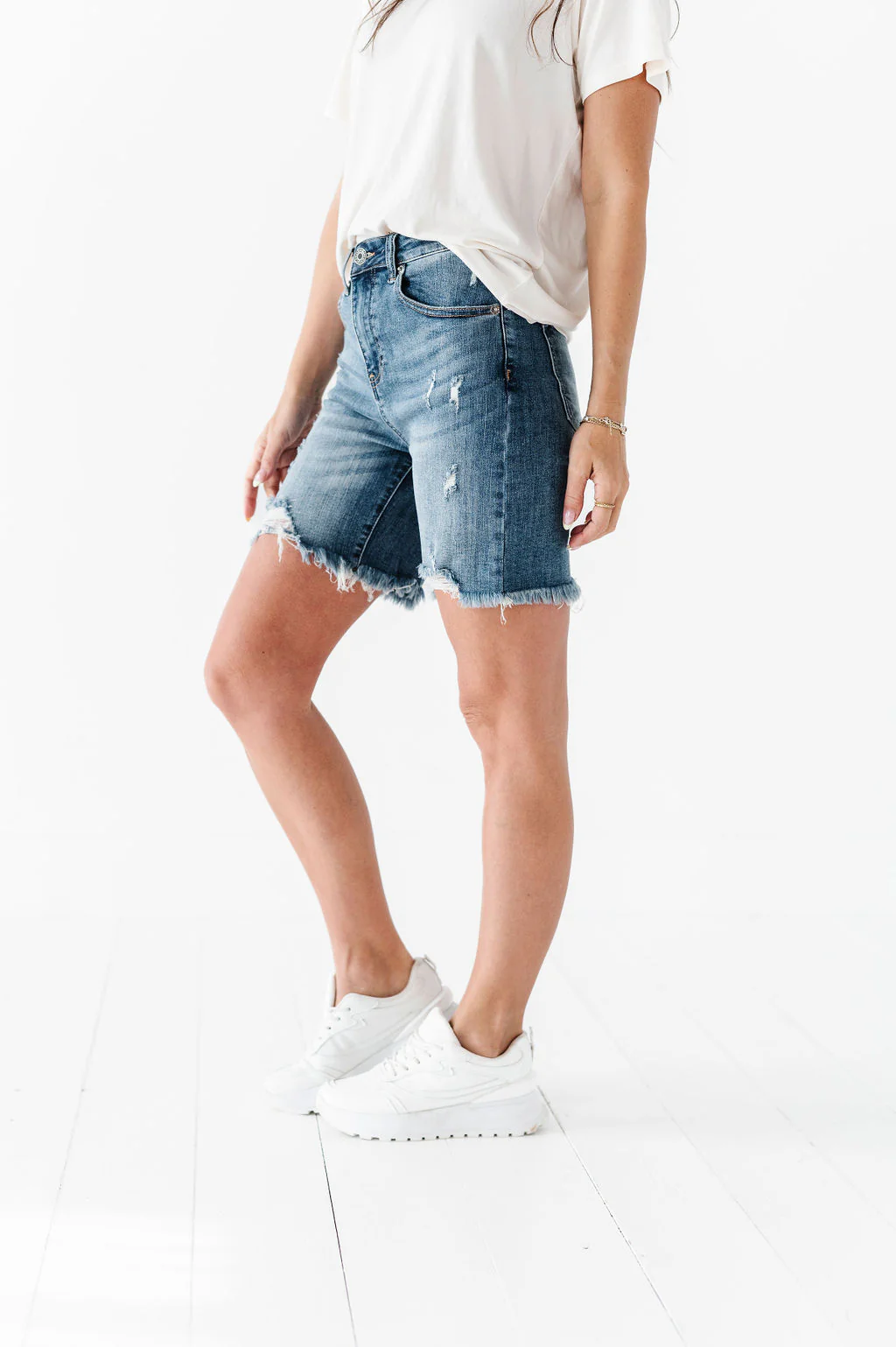 - Distressed hem raw edge