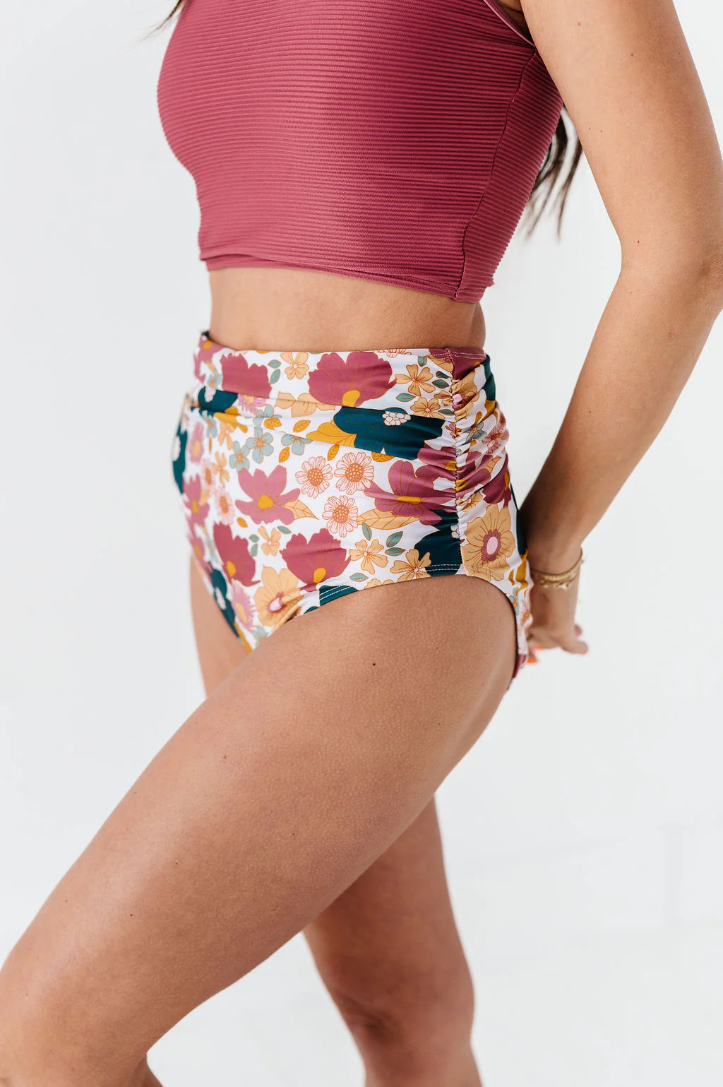 Mid Rise Ruched Bottoms in Kailani Floral