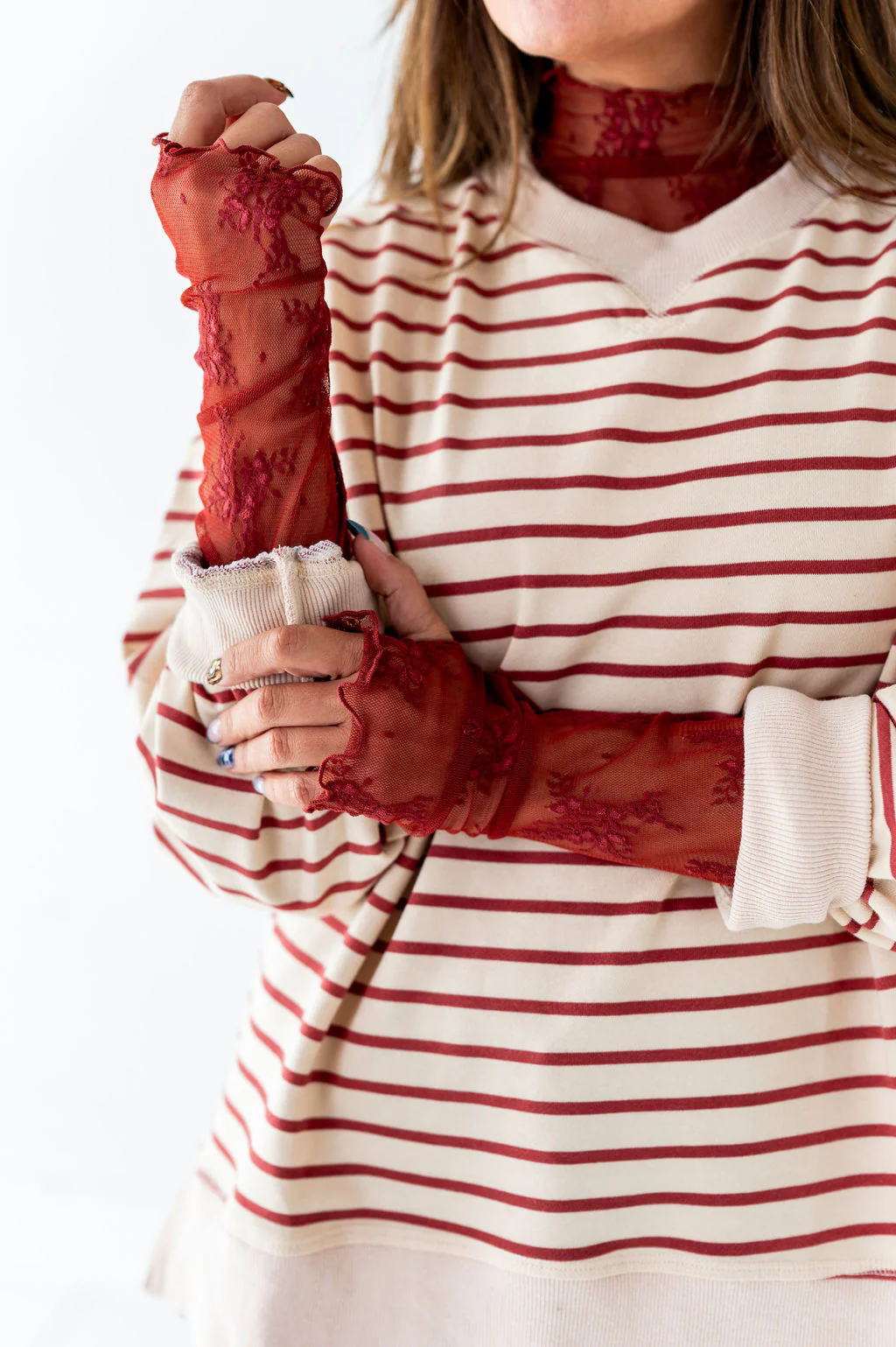 Serena Sheer Lace Top in Brick